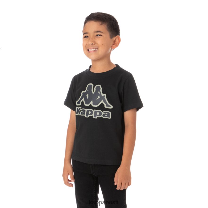 Trikootriidest laste T-särk. tavaline sobivus. lühikeste varrukatega, läbiv kaelus. rinnale trükitud omini logo ja kappa kiri. tekstiili koostis: puuvill 100%.
